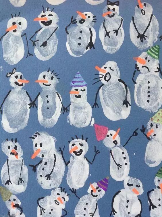 用手掌画雪人。