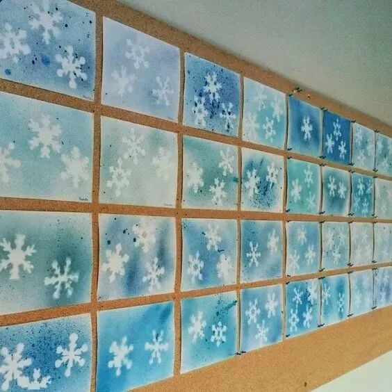 完成的作品自然而梦幻,很具艺术欣赏性。孩子们的作品挂到墙上,就是好看特别的冬季主题墙。