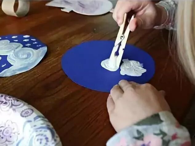 小木夹夹着一团棉花,也能涂出可爱的小雪人。